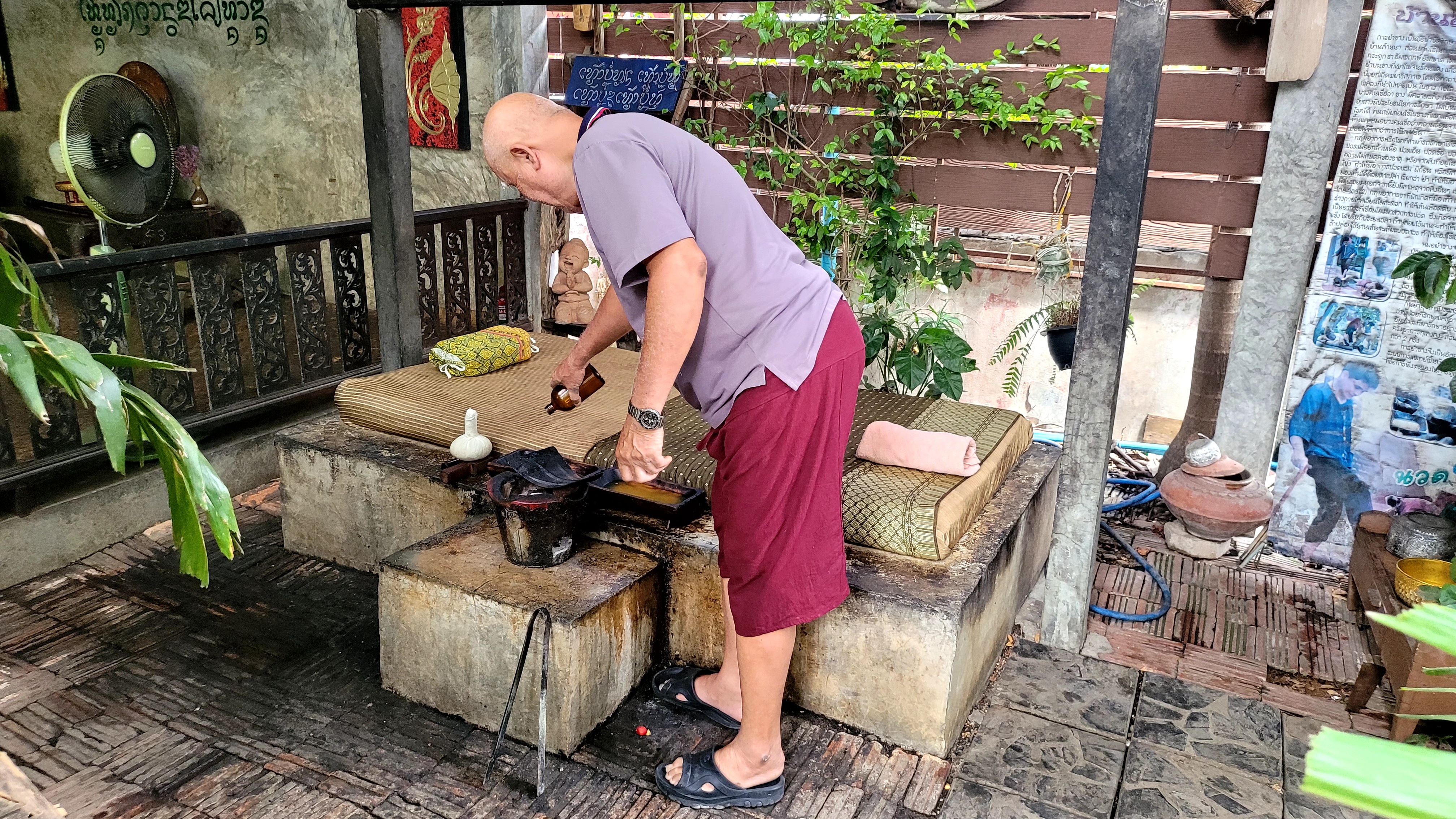 일반인들에게 마사지를 제공할 뿐만 아니라 마사지 스쿨에서 마사지를 배울 수 있는 수업도 진행하고 있었습니다. 전통과 현대 기술의 조화를 통해 다양한 테라피 프로그램을 제공하고 있습니다. 그중에서도 특별한 마사지 테라피는 파이어 마사지(Fire Massage - Yam Khang)입니다.