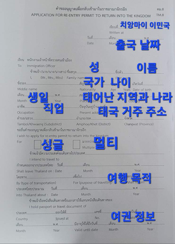 1. Written at : 치앙마이 이민국을 적으면 됩니다. Chiangmai Immirgration