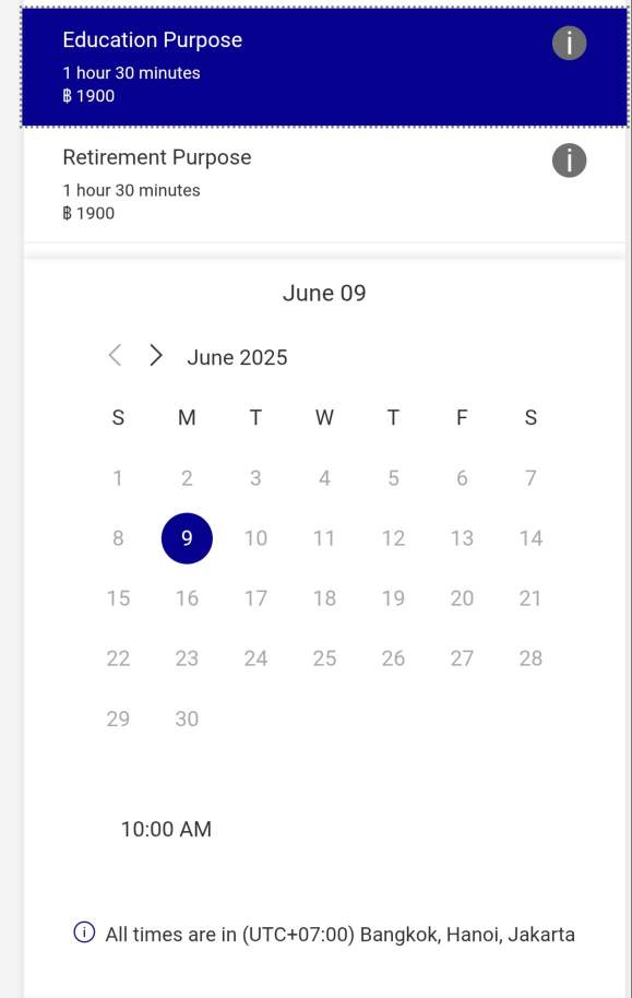 학생 비자의 경우, Education Purpose를 클릭합니다. 그럼 캘린더 날짜가 나오게 됩니다.